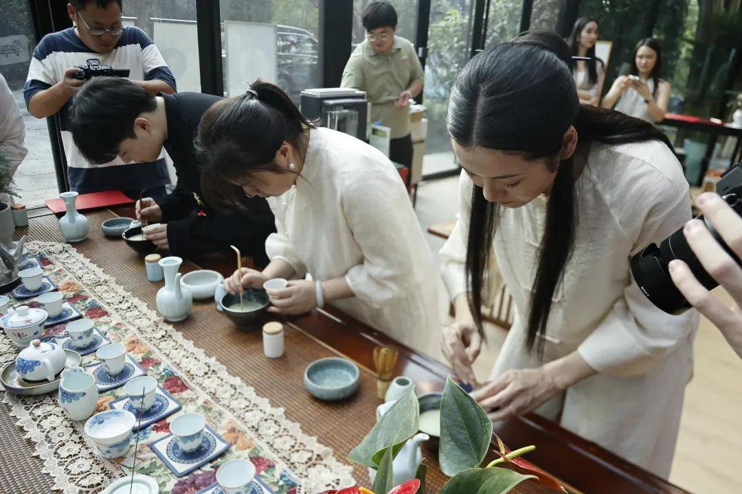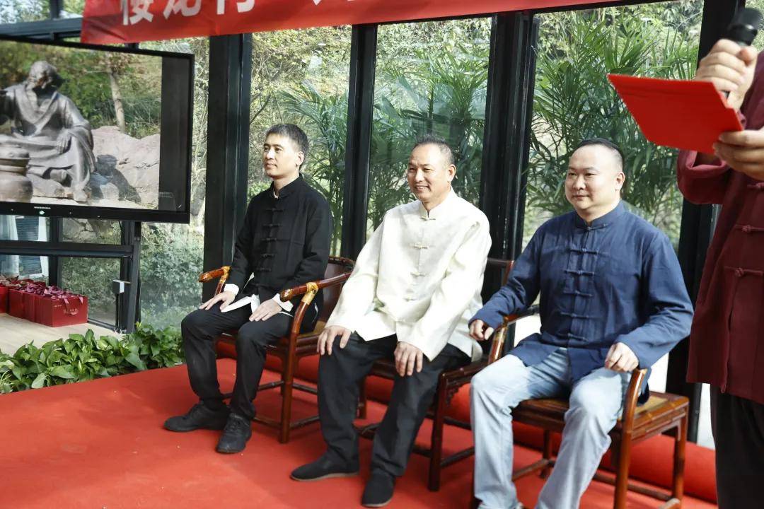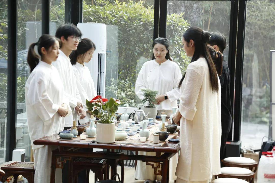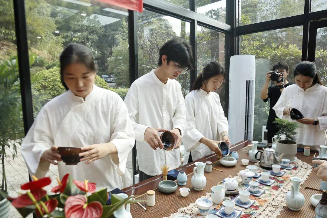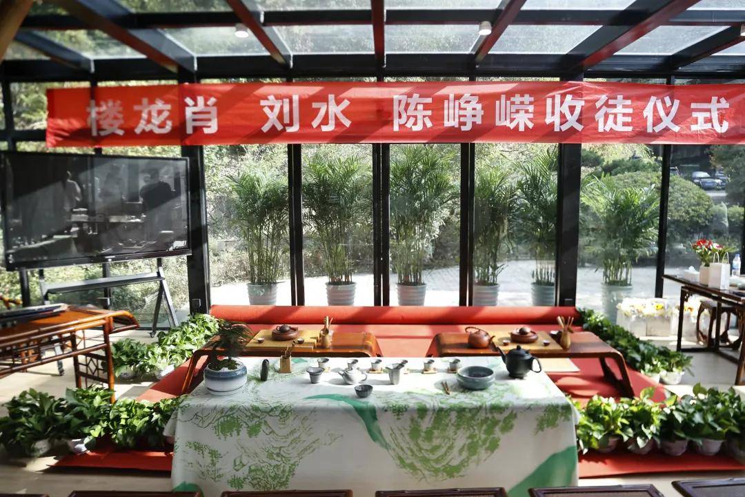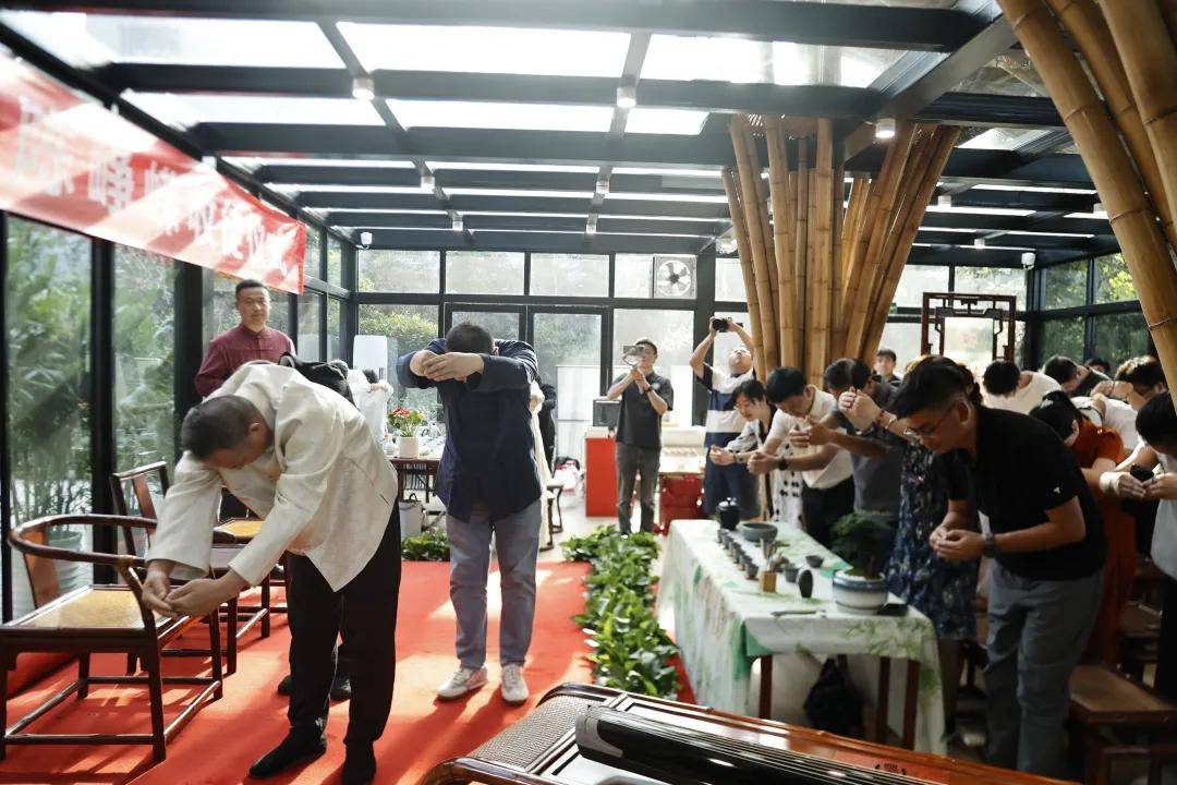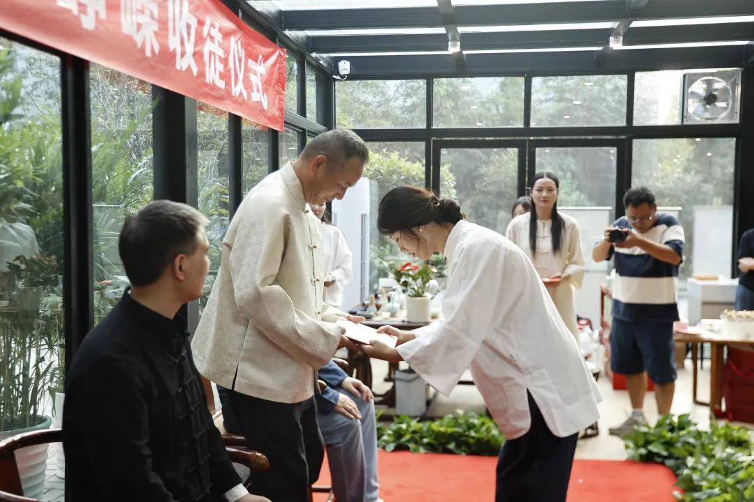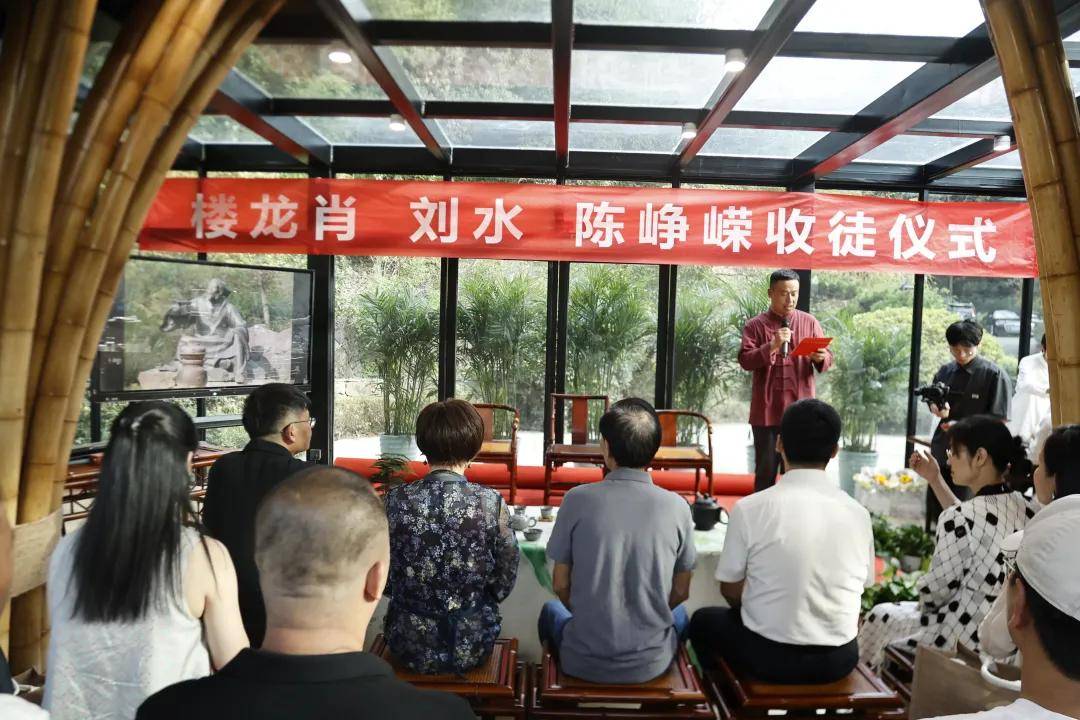 浙江农林大学非遗研究院名誉院长、茅盾文学奖得主王旭烽;以匠心妙手守护非遗瑰宝,西湖龙井采摘与炒制技艺国家级代表性传承人樊生华;浙江农林大学茶学与茶文化学院党总支书记张路;浙江花园集团党委书记邵君芳;青山湖科技城投资集团总书记陈向阳等嘉宾参加本次仪式组成见证人团,共同见证九曲红梅茶制作技艺代表性传承人楼龙肖、柘荣高山白茶制作技艺代表性传承人刘水,桂花龙井茶制作技艺代表性传承人陈峥嵘的收徒仪式。三位大师和七位弟子,将以一系列具有象征性的茶仪式,弟子将在点茶的盏面上写下自己名字,作为信物奉献给师父,以显示来完成拜师的寓意和诚信,表达“一日为师终身在席”的契约感,而师父将同样赐予师门寄语规则,承诺通过“一对一”“一对多”的师承模式,把核心非遗技艺倾囊相授。活动汇聚众多业界精英与文化传承者,其中多位大师正是此次收徒的“师父代表”,茶学专家学者、临安本地茶企代表及茶文化爱好者共襄盛举,政企学研多方联动,为师徒传承与产业对接搭建桥梁。