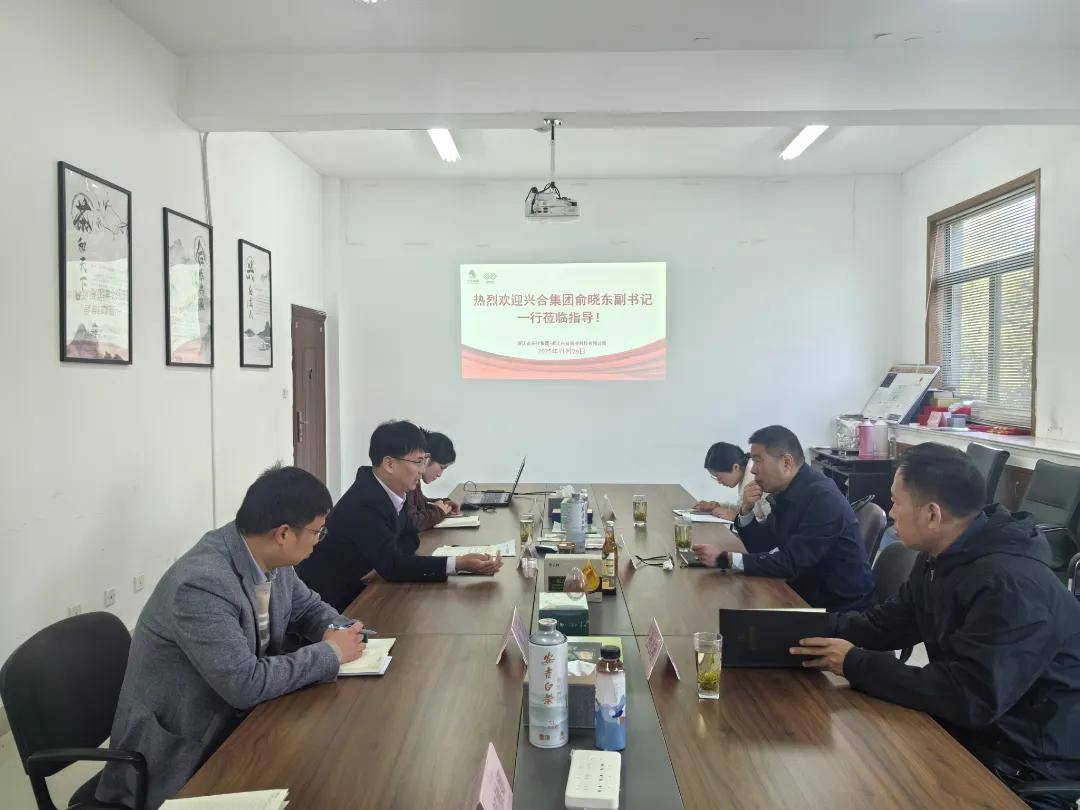 11月26日,浙江省兴合集团党委副书记、监事会主席俞晓东一行莅临浙茶集团兴合科技公司开展考察调研。浙茶集团副总经理、兴合科技公司总经理夏兵陪同交流。