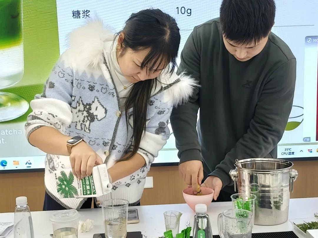 在径山抹茶调饮实践课上,学员们亲手玩转抹茶创意!从基础到进阶,轻松掌握调制技法,让每一杯都是专属自己的风味杰作。